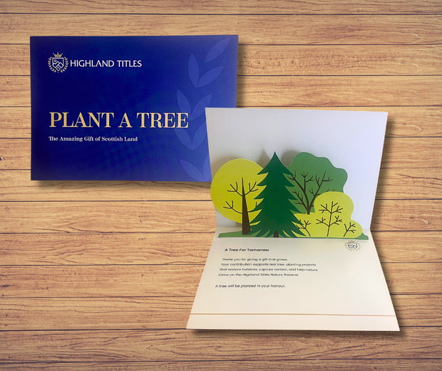 Give the gift of new life in the Scottish Highlands. This beautifully designed 3D pop-up card from Highland Titles includes the planting of a real tree in a protected Scottish woodland reserve. It’s a thoughtful, sustainable present that helps restore native habitat - and makes a memorable keepsake for any occasion.